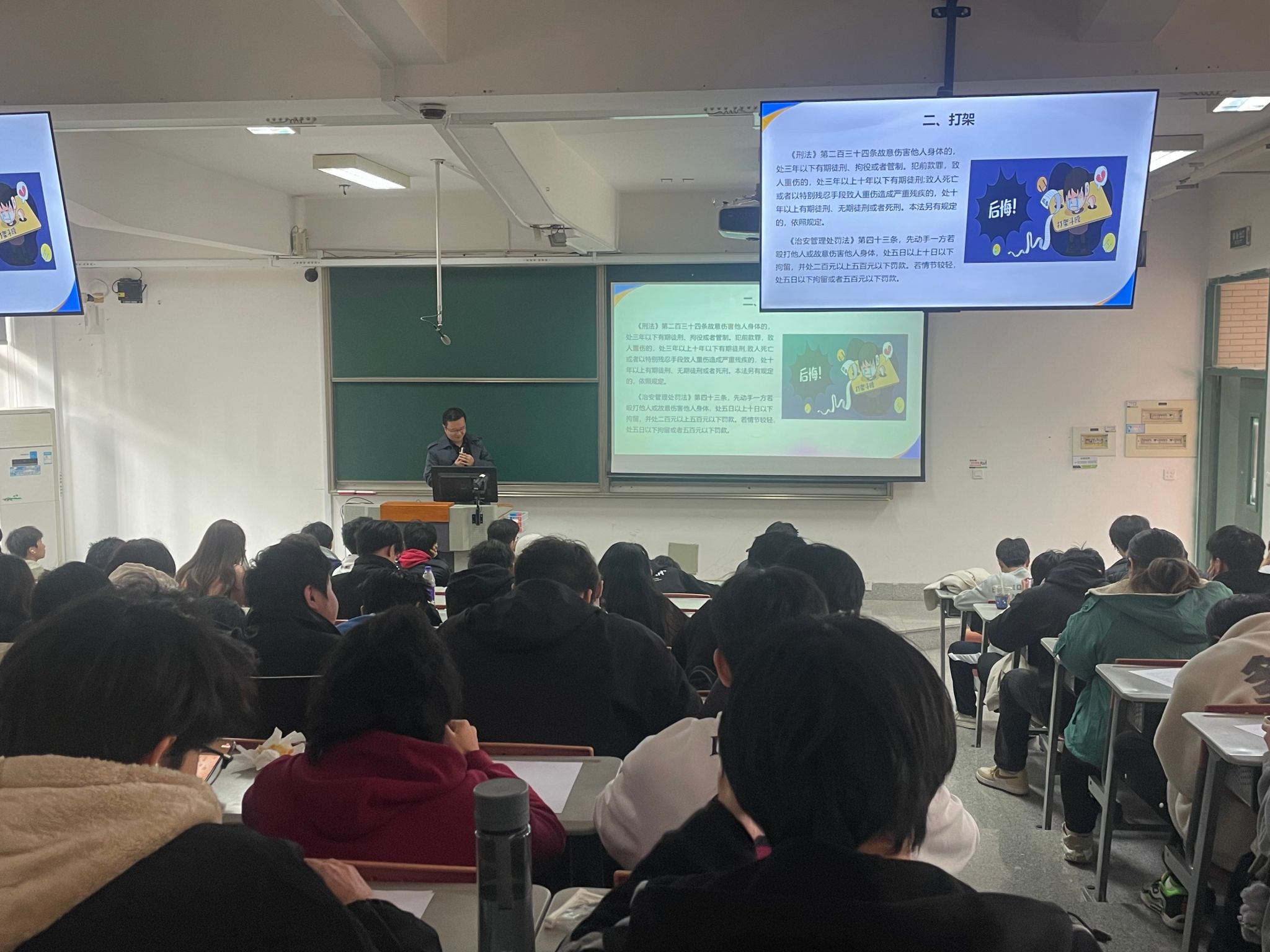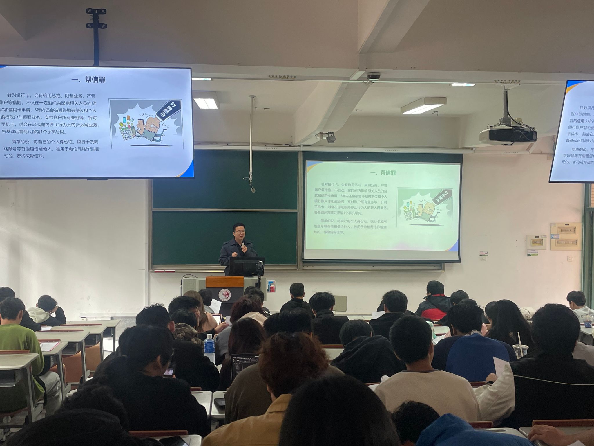 王清清老师结合自身工作经验,重点围绕防诈骗、交通安全、打架斗殴、非法宗教及间谍罪等多个方面进行详细的讲解。他特别指出,由于境外学生证件类型的特殊性,容易成为犯罪分子的目标,提醒同学们务必保护好自己的证件信息。随后,王老师结合生动具体的案例,深入剖析了触犯法律的严重后果,引导同学们明辨是非,保持清醒头脑,坚决不触碰法律红线。