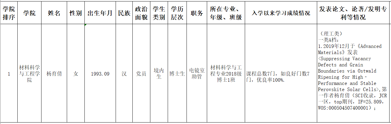 根据《伟德国际1949始于英国校长特别奖实施办法》(华大学〔201621)、《关于做好2020年校长特别奖评审工作的通知》(校学〔202017)和《伟德国际1949官网登录研究生科研成果认定办法》(材料委〔201966号)等有关文件精神和相关规定,学院成立校长特别奖评审小组,综合评估申报学生的学术成果等情况,严格按照校长特别奖实施办法,确定拟推荐人选。现予以公示。