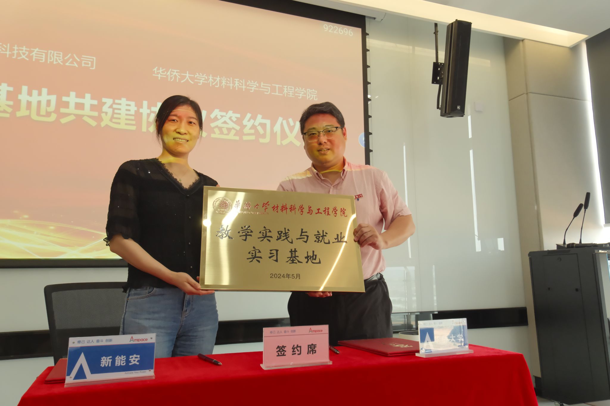 会上,双方共同签署了合作文件,并举行了教学与就业实践基地授牌仪式。新能安制造工程总监程文强表示,公司重视希望加强同学院在科研成果转化、师资互聘访问、就业人才招聘、联合人才培养等方面的合作,探索和深化协同育人合作机制,实现“产、学、研、教”的深度融合与共同发展。蔡浩对双方近期在人才招聘、人才培养、师资互聘、实习实践等形成的合作共识给予肯定和期待,表示学院将结合市场及企业对人才知识、能力、素质的需求来不断调整和完善人才培养课程体系,与新能安共同探索“产教融合、协同育人”的应用型人才培养模式,着重化解工科学生动手能力培养的难点,推动“真实践”落地生根,有效解决科研教学与地方人才需求相适性问题。