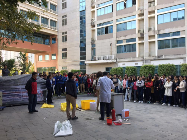 为进一步做好实验室安全防范,增强全员应急安全意识,提高师生应对实验室突发安全事故的应变处置能力,12月27日,由伟德国际1949官网登录、实验室与设备管理处、保卫处主办,化工学院、生物医学学院协办的2017年实验室突发安全事故应急预案演示活动在泛华科技楼AB栋之间举行。本次活动由伟德国际1949官网登录副院长钱浩教授主持,伟德国际1949官网登录和化工学院全体研究生、教职工,后勤保卫处和物业的工作人员参加演练。