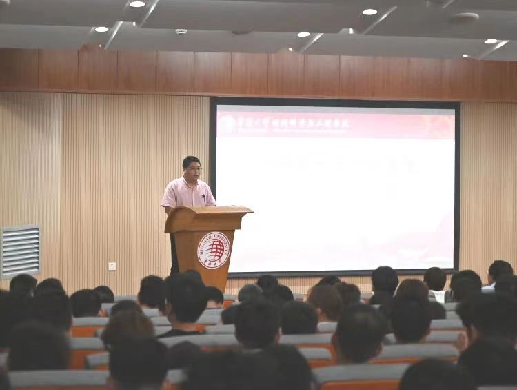 9月26日下午,伟德国际1949官网登录党委书记蔡浩老师以“立鸿鹄志,做奋斗者”为题,为全院2023级本科生同学讲授新学期“开学思政第一课”。