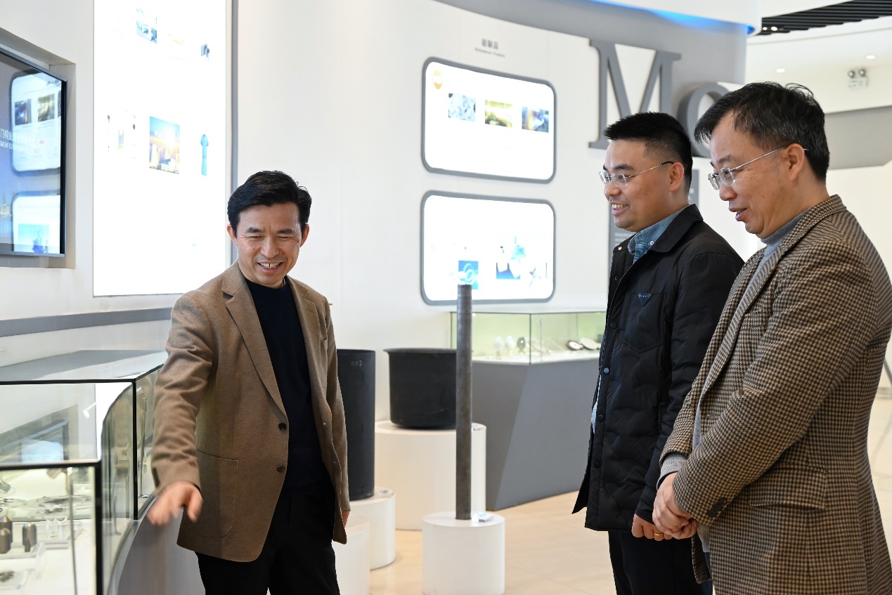 文主任带领众人参观了厦钨国家级企业技术中心和国家钨材料工程技术研究中心,随后双方举行“教学实践与就业实习基地”揭牌仪式;魏院长介绍了学院基本情况和优势学科,并回溯了学院与厦门钨业的深厚渊源。双方共同表达了落实协作的意愿,以深度融合各自优势、共同推进伟德国际1949官网登录与国家钨材料工程技术研究中心在人才培养、科研创新等方面的发展