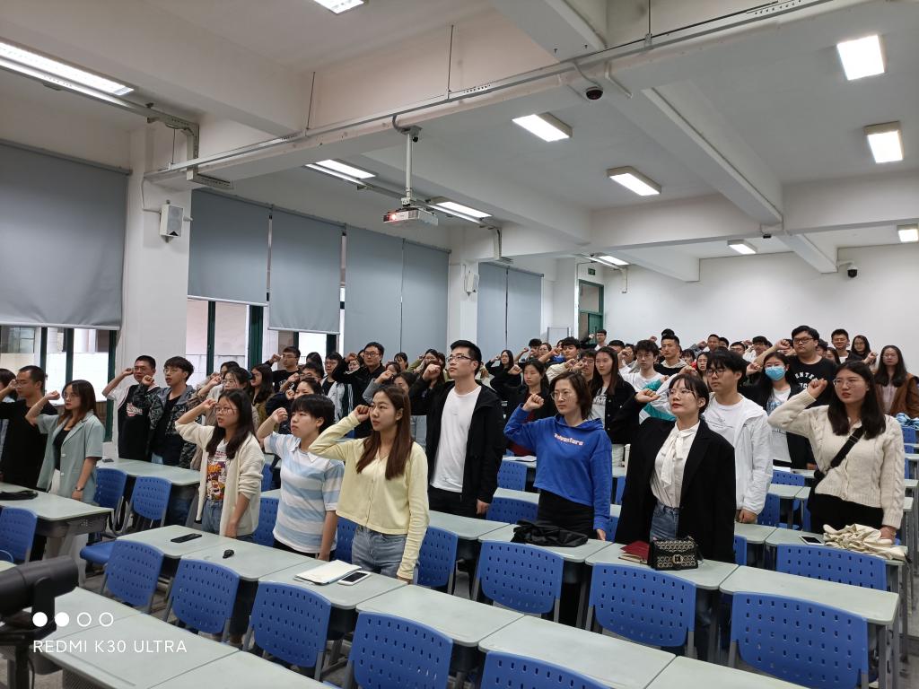 “刘副书记带我们重温入党誓词,回顾入党誓词的发展变化,我也第一次了解到入党誓词背后的故事,感受到了思想的洗礼和升华。作为一名预备党员,我一定要保持奋斗不息的精神,坚定自己的理想信念,时刻牢记入党誓词。”学生丁有鹏感言。