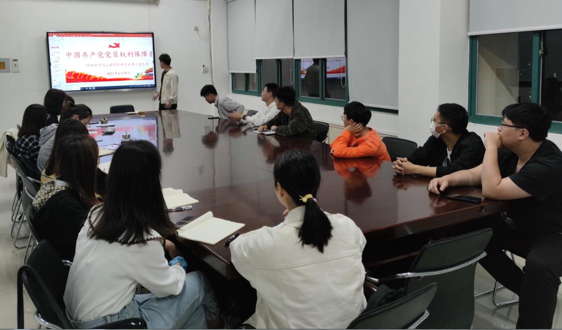2021年4月29日,伟德国际1949官网登录研究生第三党支部在学院会议室E4-305开展《中国共产党党员权利保障条例》专题学习交流会,支部党员和入党积极分子参加此次学习。