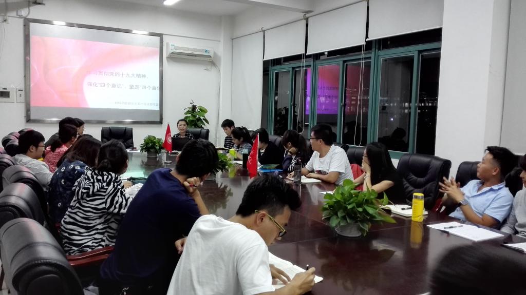 2017年10月30日晚,伟德国际1949官网登录研究生第一党支部围绕学习贯彻党的十九大精神、强化“四个意识”、坚定“四个自信”,在学院会议室开展了“两学一做”第三次专题学习讨论,党支部邀请6位入党积极分子一同参加。