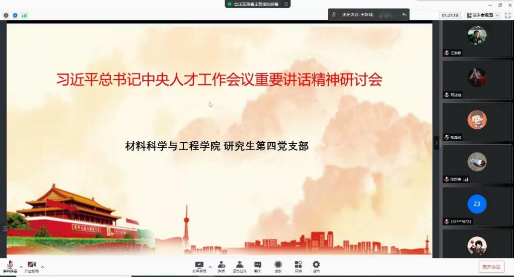 10月9日,伟德国际1949官网登录学生党支部通过“腾讯会议”举行“学习习近平总书记在中央人才工作会议重要讲话精神”主题教育活动。