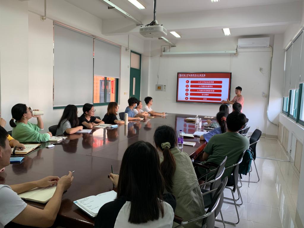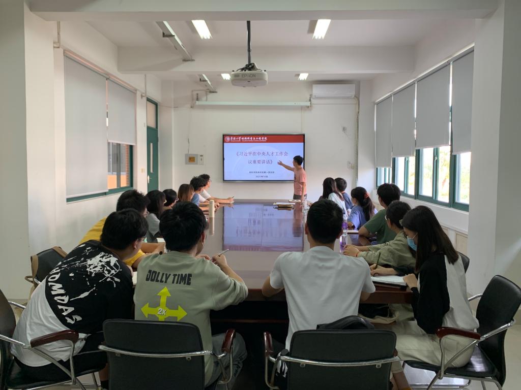 1019日下午伟德国际1949官网登录本科生第一党支部在学院会议室开展习近平总书记在中央人才工作会议重要讲话精神专题学习交流支部全体党员参加会议党支部书记蔡建华主持会议