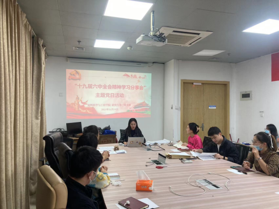 11月19日,伟德国际1949官网登录研究生第一党支部举行党的十九届六中全会精神学习分享会,支部发展对象、全体党员参加会议