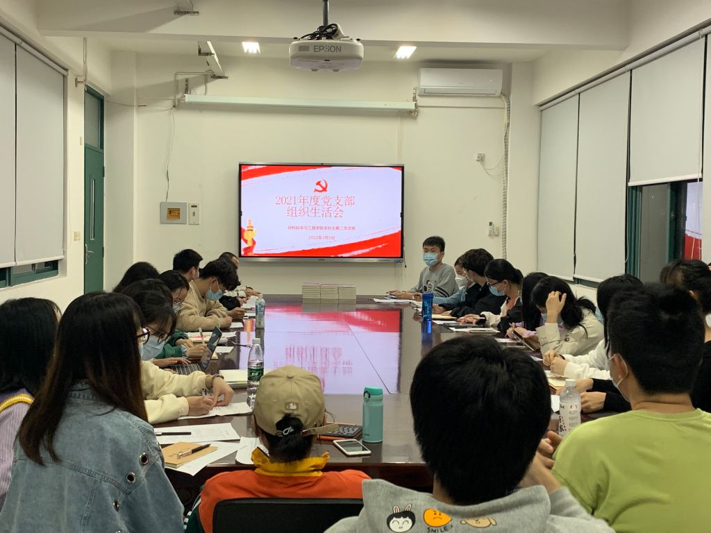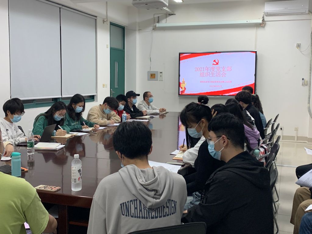 2022年3月5日晚,伟德国际1949官网登录本科生第二党支部于学院会议室召开2021年度党支部组织生活会,党支部书记胡伟主持会议,学院党委委员李东旭列席指导。