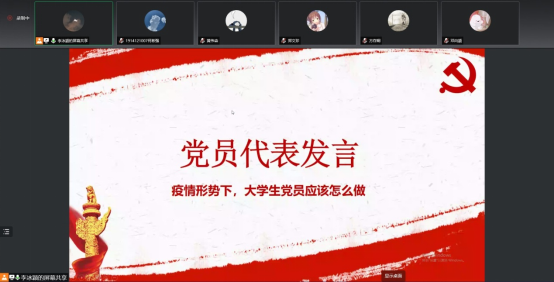 观看结束后,支部党员们纷纷对“疫情形势下,大学生党员应该怎样做”进行发言。其中,戴露讲到:“我们应带头遵守学校学院疫情防控工作要求,向同学宣传个人防护的安全知识,出入公共场所戴好口罩,不点外卖、减少与校外的接触等,让我们用实际行动带领同学一起为疫情防控贡献力量。”连翠婷说:“我们要身体力行,带头践行疫情防控要求,非必要不出门,出门必戴口罩,做积极执行防控措施的表率,带头履行社会责任,争当维护社会和谐稳定的表率。”
