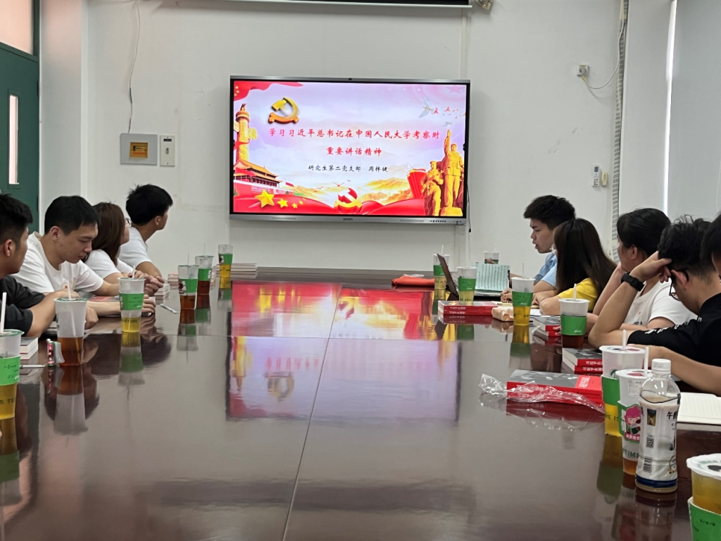 党支部书记周梓健带领支部党员学习了中国共产党宣传工作简史习近平总书记在中国人民大学考察时的重要讲话精神,支部党员积极参与学习并分享学习体会。接着,周梓健对即将毕业支部党员同志提出希望,无论身在何处,都要珍惜党员身份,争做模范榜样。