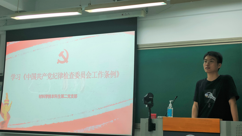 6月11日晚,伟德国际1949官网登录本科生第二党支部于F2-301举行《中国共产党纪律检查委员会工作条例》学习活动,支部全体党员参加会议,党支部书记胡伟主持会议。胡伟分别从《条例》的产生与发展,党的各级纪律检查委员会工作的总则,新修订《条例》的主要调整内容,修订的重要意义对《条例》进行解读。