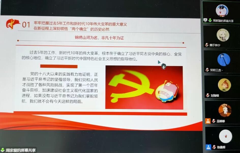 2022年12月1日,伟德国际1949官网登录本科生第三党支部于腾讯会议开展党的二十大精神专题党课学习。党支部书记周家璇,支部党员参加会议,苏佳鑫主持会议