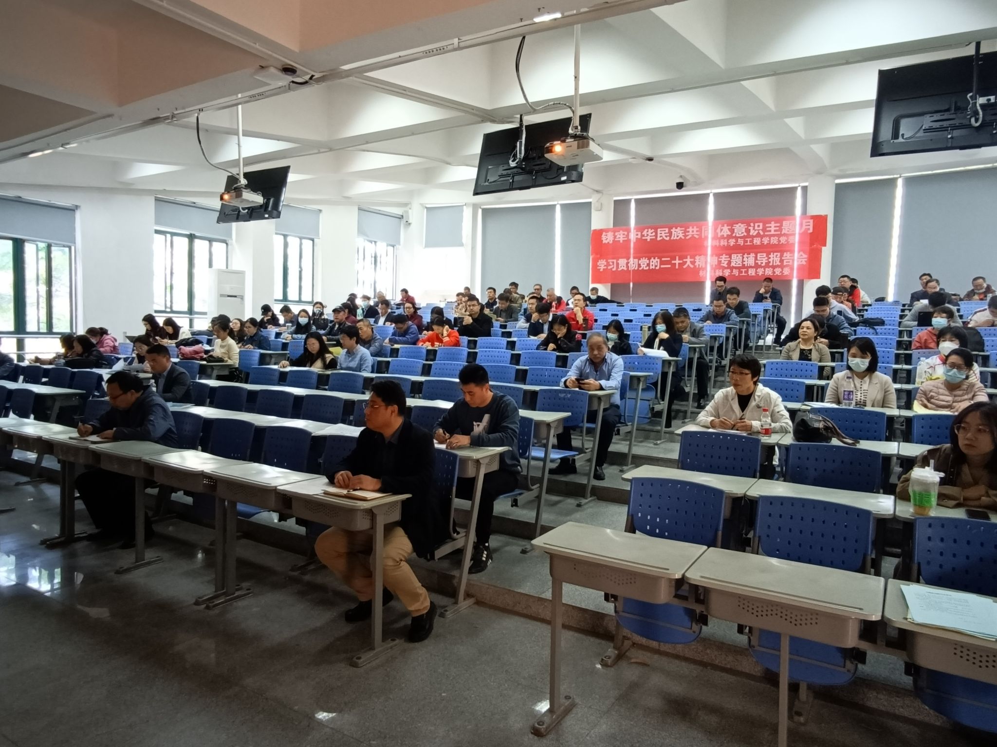 与会人员认真倾听宣讲报告,记录会议重要内容。会后,大家表示,本次辅导报告内容全面、丰富,具有很强的思想性、指导性和实践性,对于准确把握、全面领会、深入学习贯彻党的二十大精神具有重要指导作用。