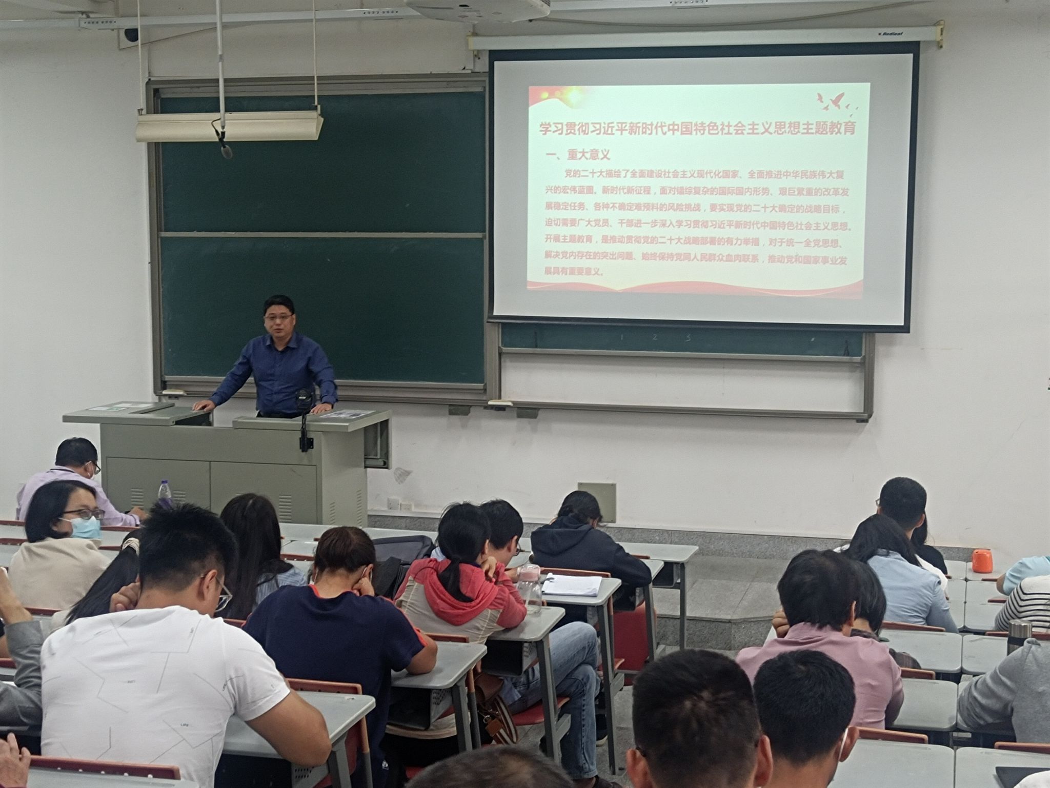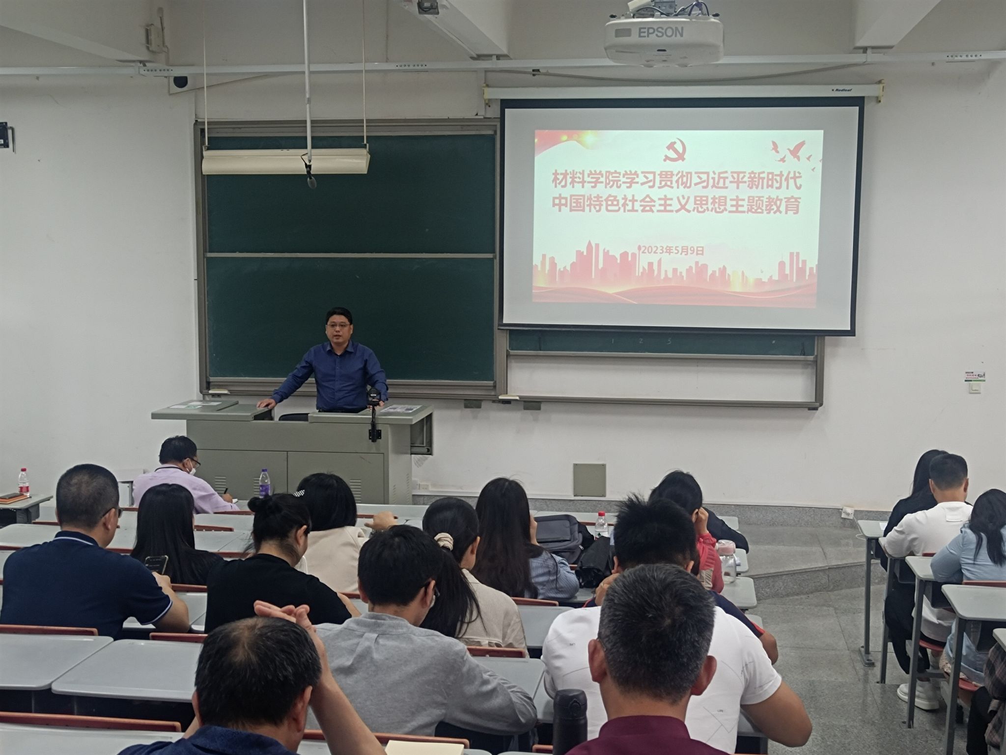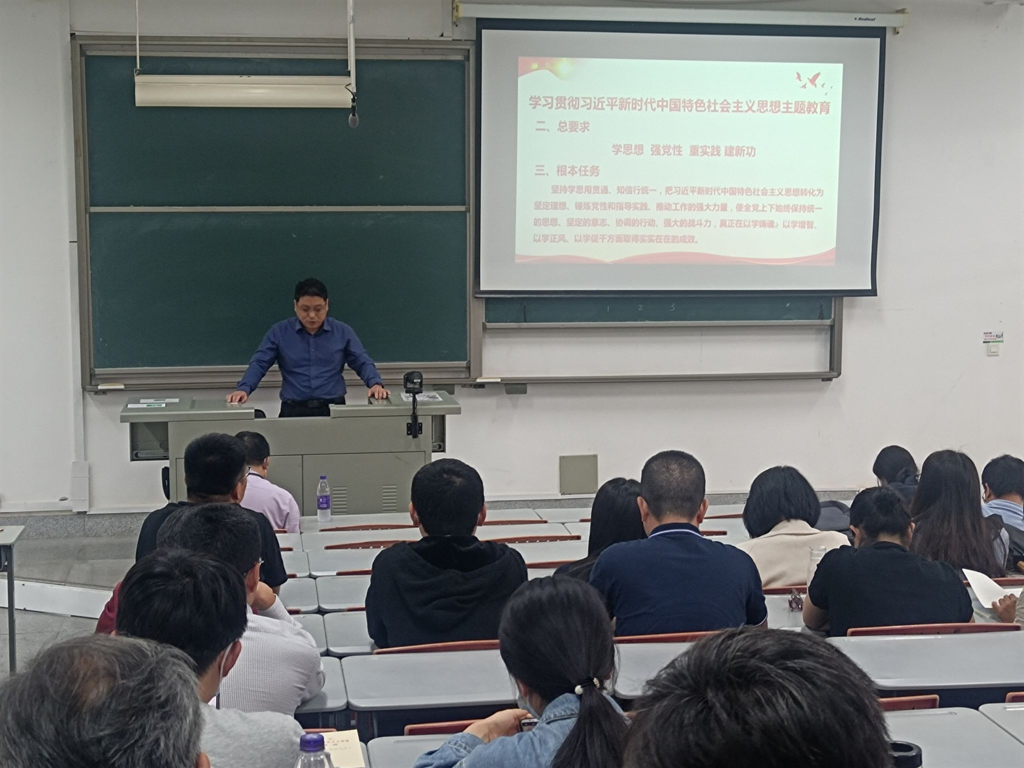 5月9日下午,伟德国际1949官网登录在F4-202举行学习贯彻习近平新时代中国特色社会主义思想主题教育专题学习会,全体教职工参加学习,会议由学院党委书记蔡浩主持。