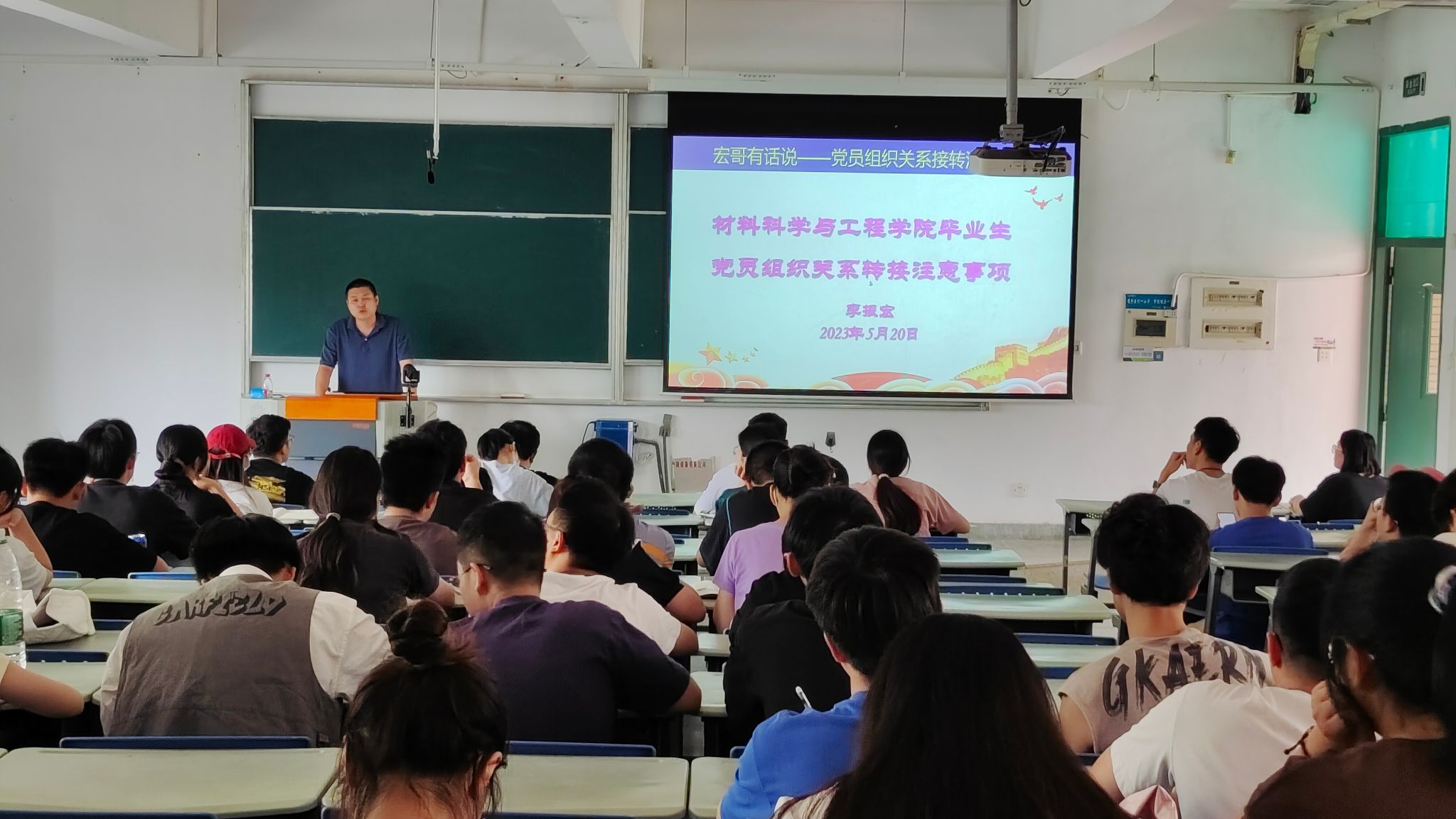 5月20日,伟德国际1949官网登录党委E4-102举行“宏哥有话说”毕业生党员教育大会,学院党委组织员李振宏、全体毕业生党员参加此次会议。