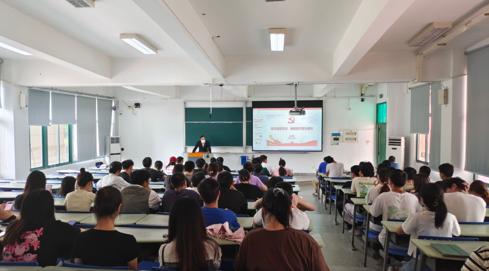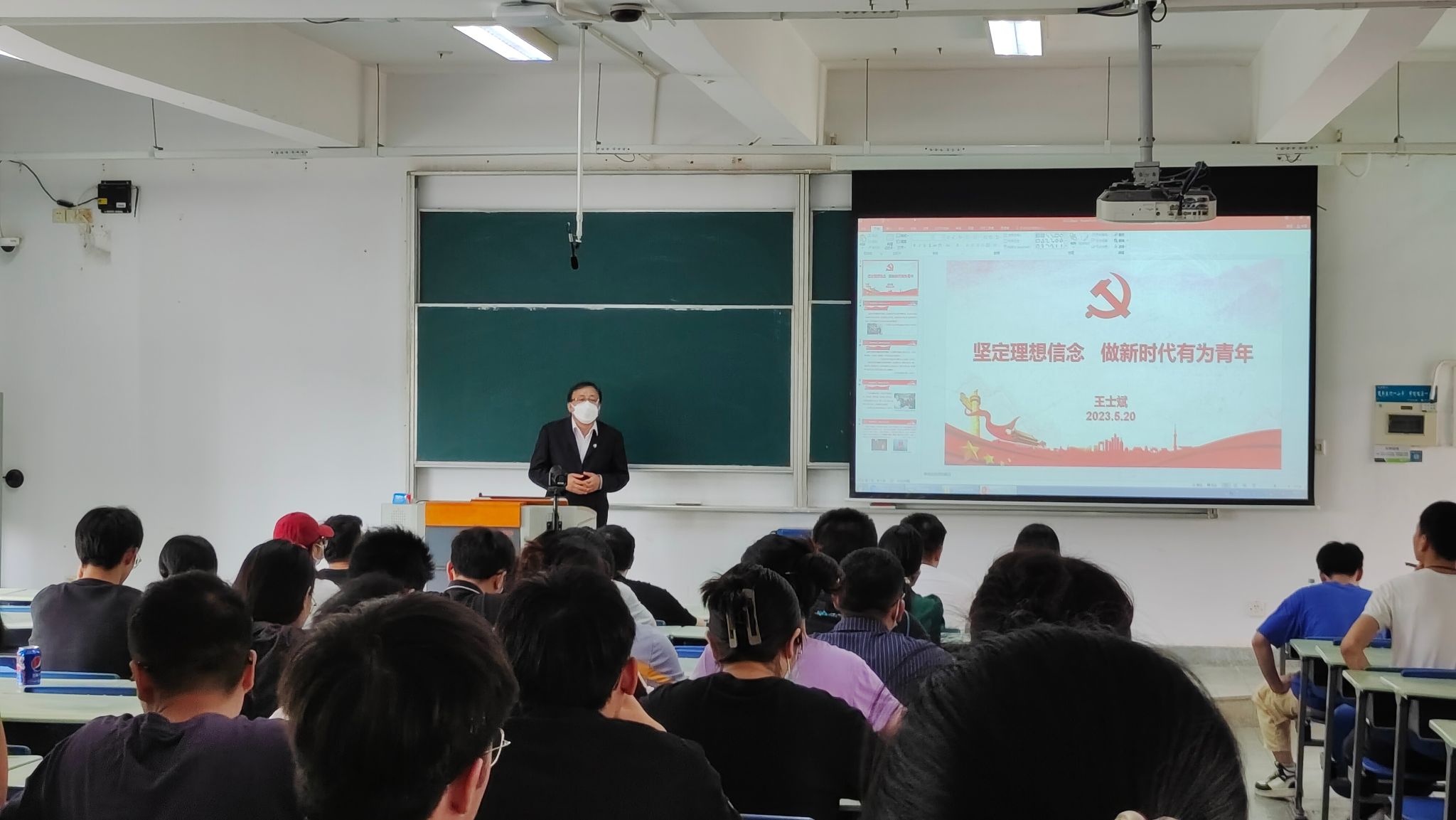 520日下午,伟德国际1949官网登录举办主题教育专题党课。在E4-102院长王士斌以《坚定理想信念,做新时代有为青年》为题,为全体毕业生党员讲党课。