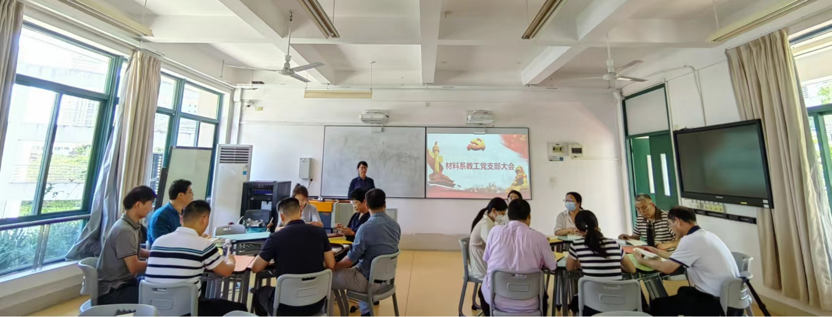 5月30下午,伟德国际1949官网登录材料系教工党支部举办学习贯彻习近平新时代中国特色社会主义思想主题教育党日活动,组织党员原文原句读《习近平新时代中国特色社会主义思想专题摘编》。本次学习会由党支部副书记陈晓闽主持。