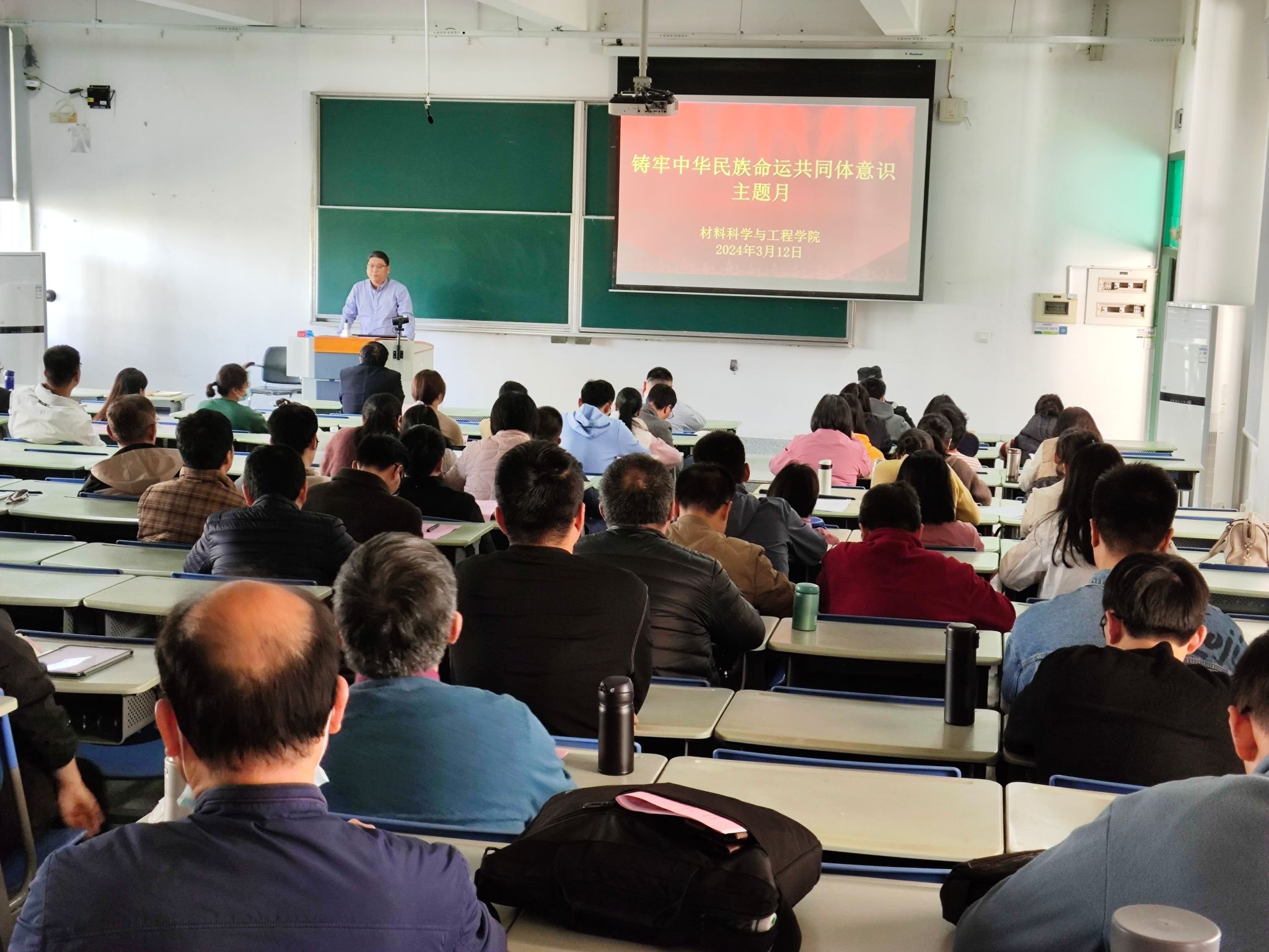 3月12日,学院召开铸牢中华民族共同体意识专题学习会,组织全体教师集中观看铸牢中华民族共同体意识宣传片——我们是一家人,会上,学院党委书记蔡浩讲解铸牢中华民族共同体意识的丰富内涵,强调要树立“四个与共”理念,坚持“五个认同”。