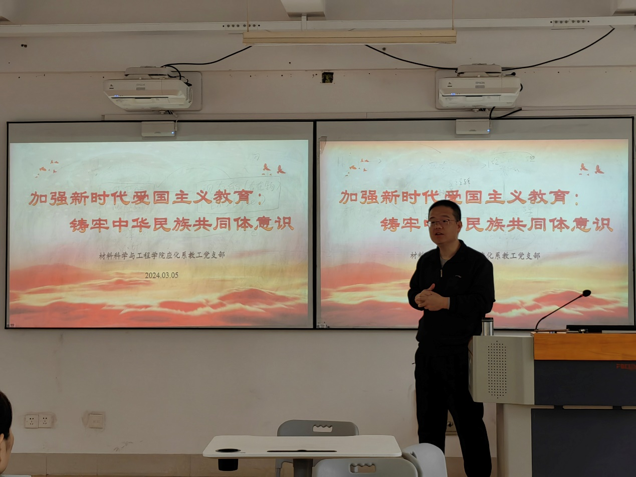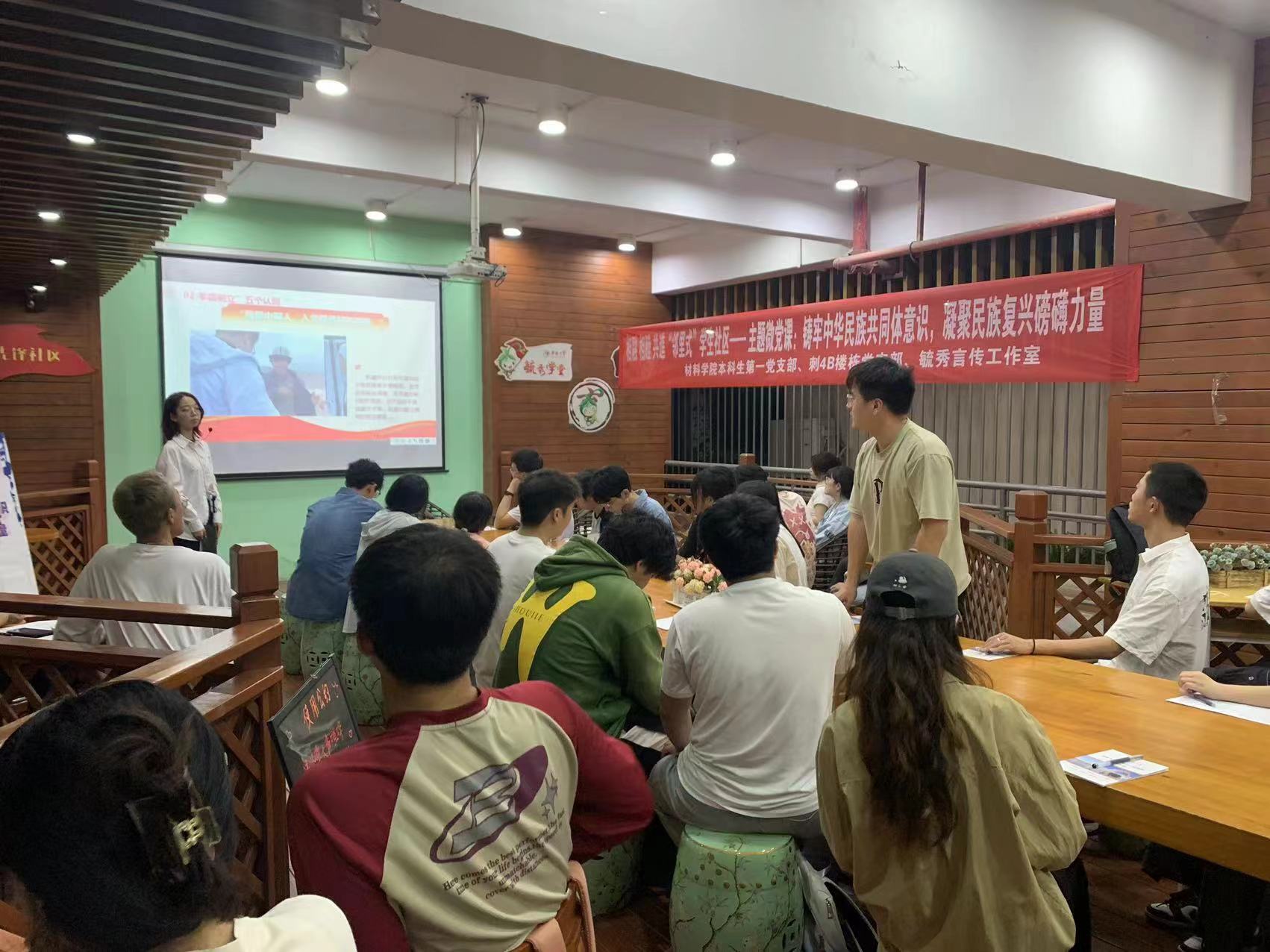 党支部利用“三会一课”和主题党日,通过开展知识竞答、少数民族党员分享家乡建设过程中自己的所见所闻所感、结合《中华人民共和国爱国主义教育法》,引领党员深刻认识铸牢中华民族共同体意识的重要性等,认真开展铸牢中华民族共同体意识专题学习。3月30日,在学生社区中心毓秀学堂,学院开展党建学习,邀请马克思主义学院专业老师指导微党课《铸牢中华民族共同体意识,凝聚民族复兴磅礴力量》。