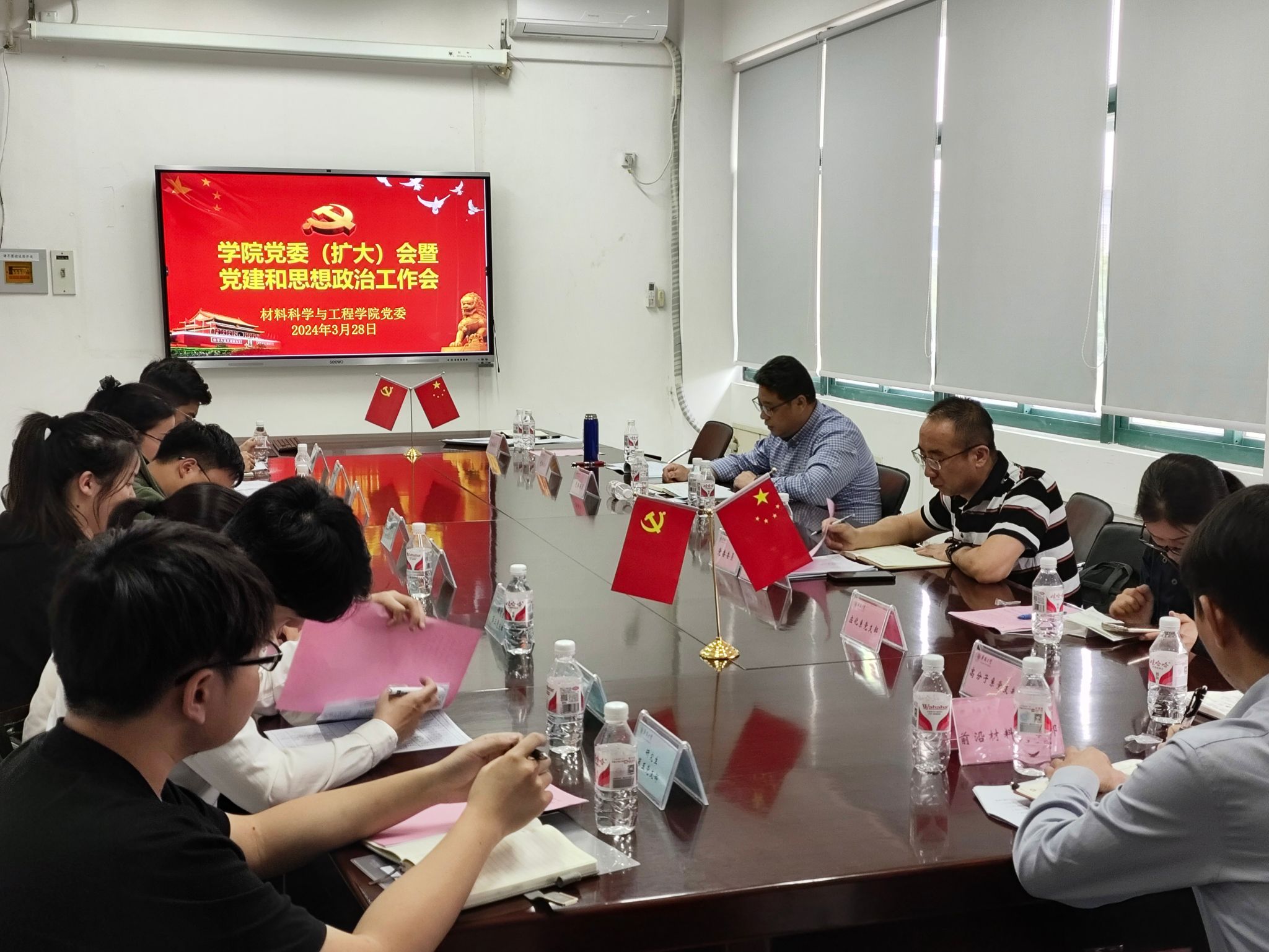 2024年328日下午,材料科学与工程学院党委在学院E4-305会议室召开党建和思想政治工作会,学院党委委员、各党支部书记参会,会议由学院党委书记蔡浩主持
