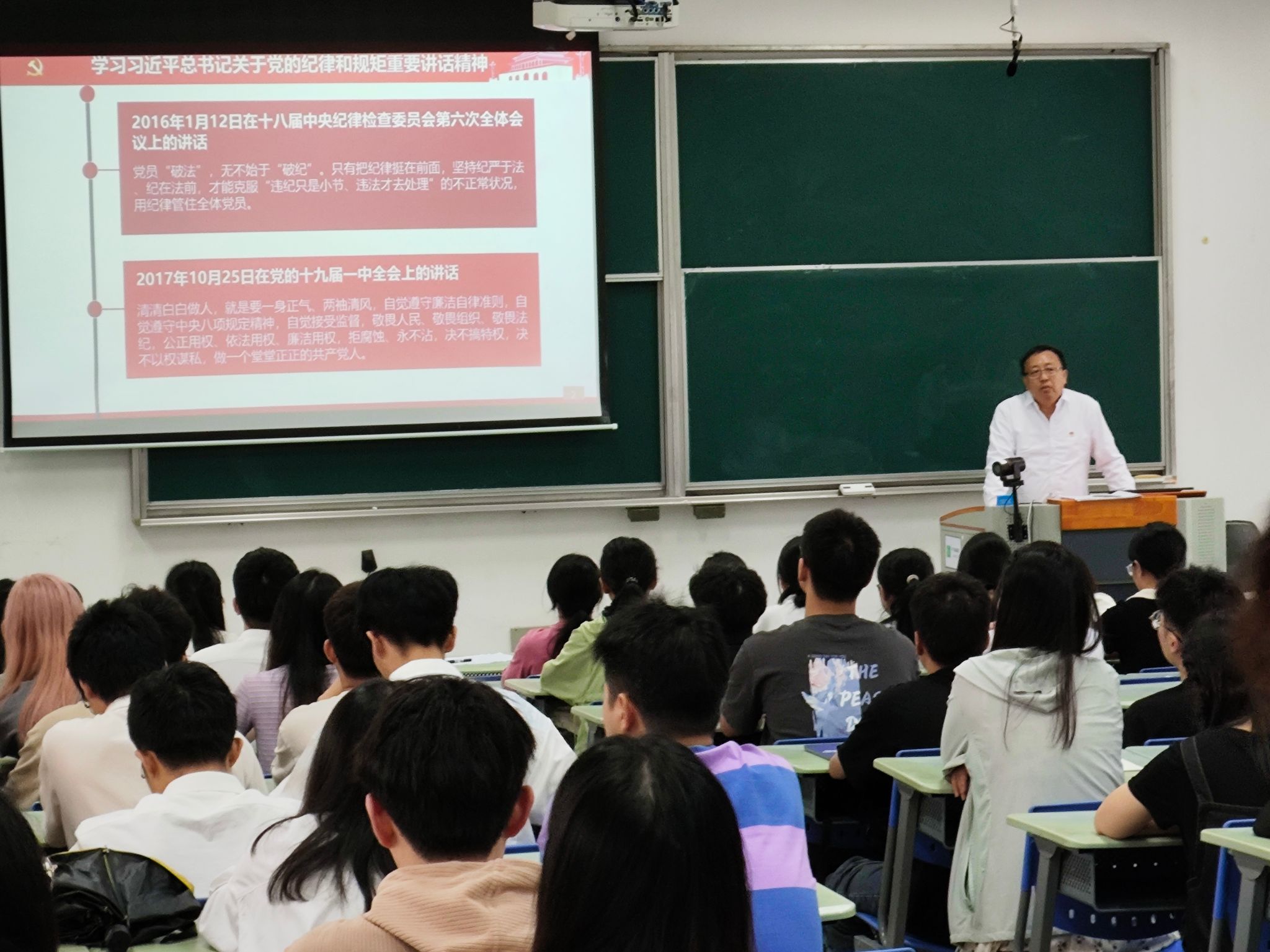 5月22日下午2点半,在厦门校区综合教学楼E5-202伟德国际1949官网登录举行党纪学习教育专题党课,学院院长王士斌以《明纪律守规矩,做新时代合格党员》为题,为全体毕业生党员讲党课。