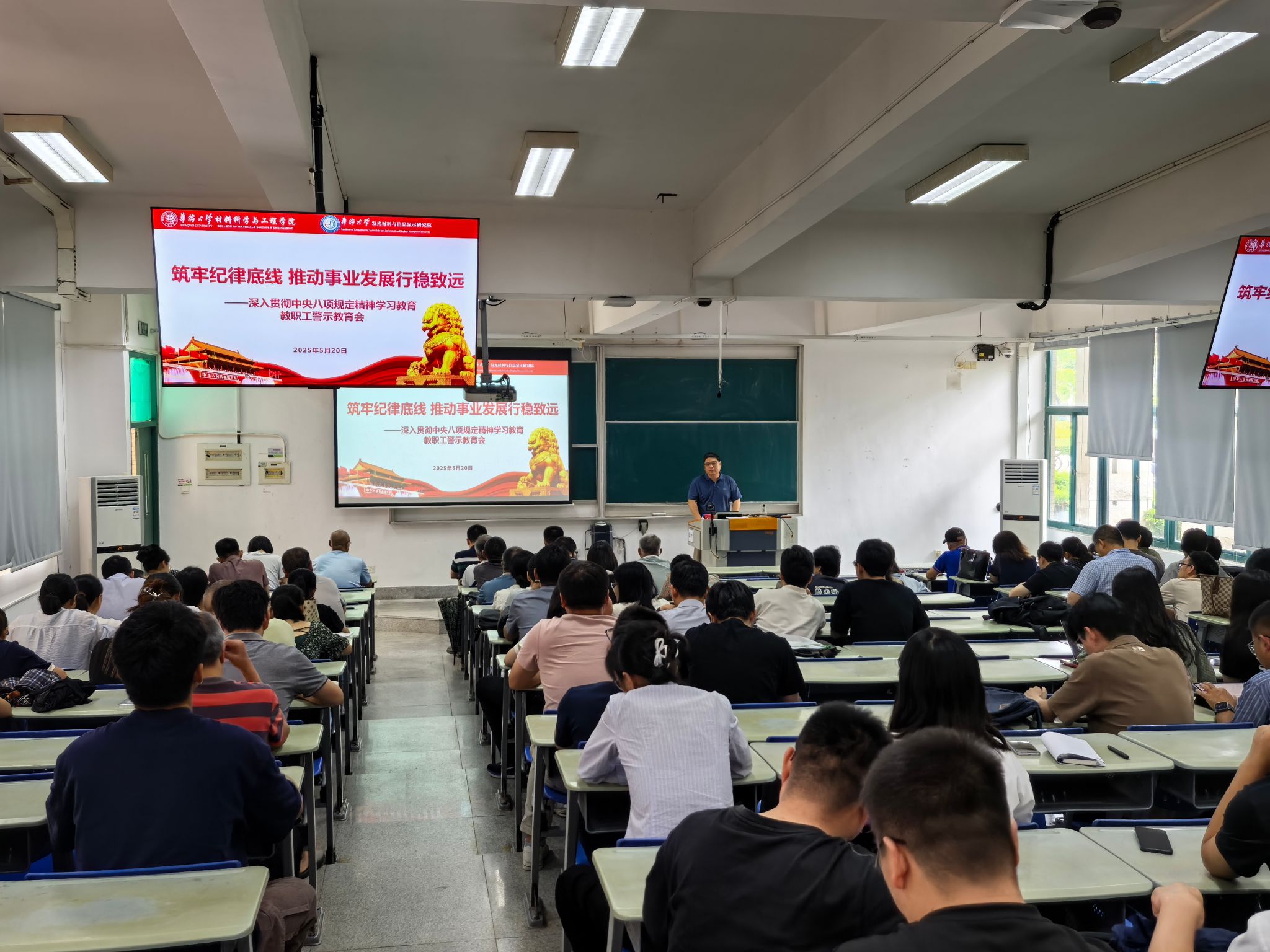 蔡浩书记以“筑牢纪律底线,推动事业发展行稳致远”为题,结合学院工作实际,从形势任务分析、党的六项纪律要求阐述、事业单位工作人员负面清单解读以及如何牢守自身纪律底线等四个方面展开专题教育。