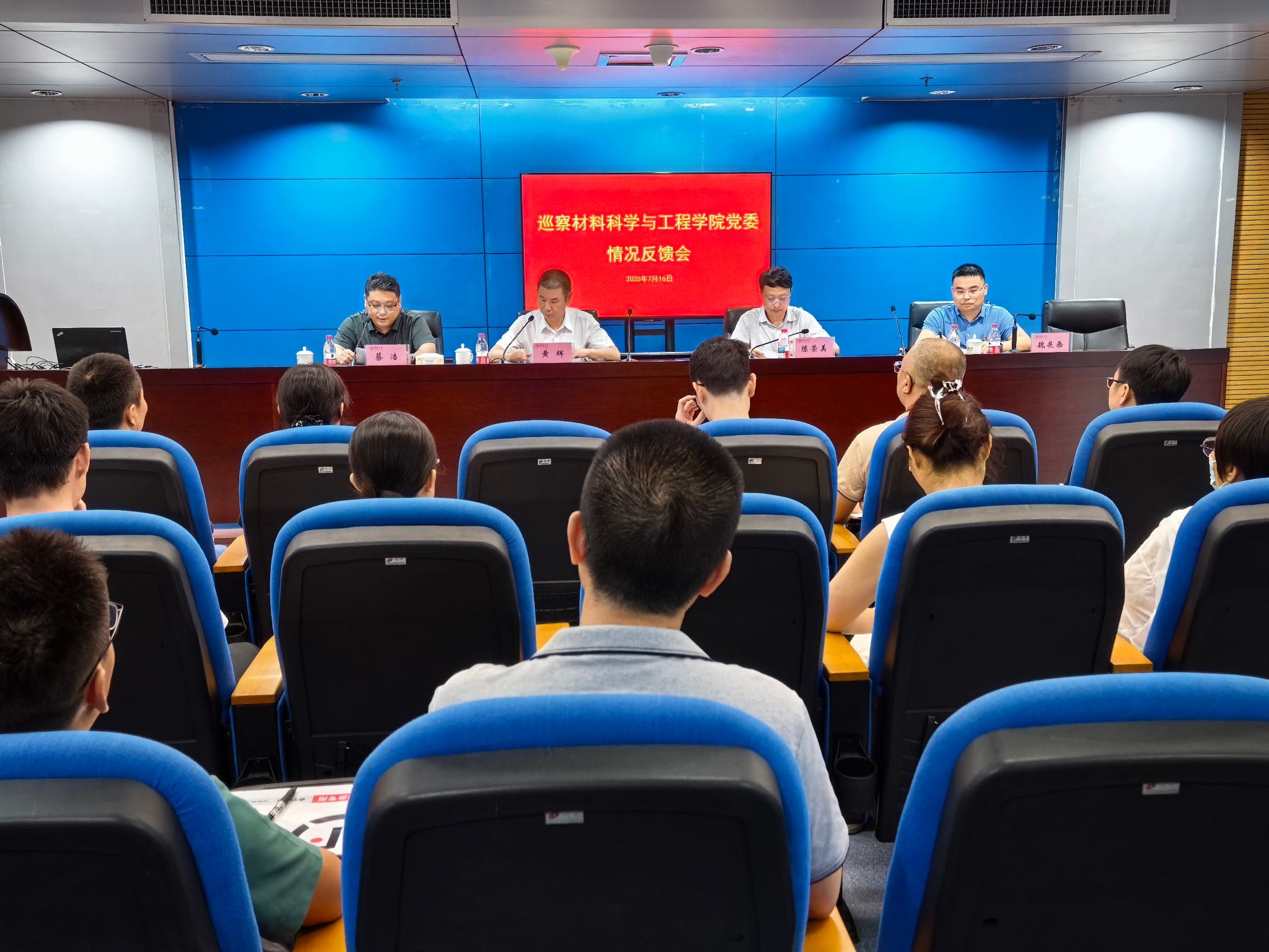 7月16日,学校党委第二巡察组巡察材料科学与工程学院党委情况反馈会在行政研发大楼401会议室召开。校党委常委、副校长黄辉,校党委第二巡察组组长陈荣美,纪检监察室副主任郑莉,党委组织部副部长颜良举等出席会议,学院领导班子成员、党委委员、教师党支部书记、院属教学科研机构负责人、科级干部等参加反馈会。会议由学院党委书记蔡浩主持。