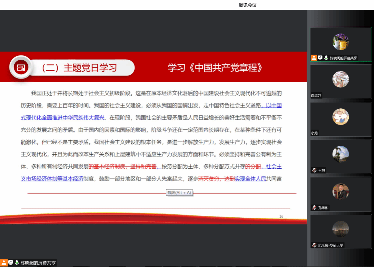2022年11月29日下午,伟德国际1949官网登录材料系教师党支部通过腾讯会议开展《中国共产党章程》学习会。会议由党支部副书记陈晓闽主持。