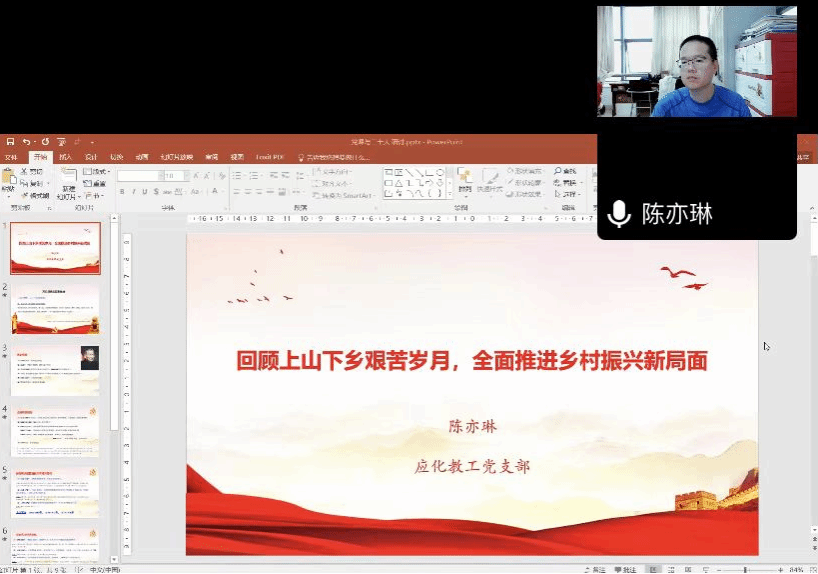 会上,党支部书记陈亦琳“回顾上山下乡艰苦岁月,全面推进乡村振兴新局面”为题,围绕“上山下乡的历史背景、中华人民共和国成立后经济危机的根源与解决、全面推进乡村振兴新局面”三个方面,以时间线为轴,介绍那段可歌可泣的艰苦岁月。面对内外交困的严峻形势,革命先辈们不畏艰辛,以农村为主体,全民共担,用智慧、勤劳和果敢战胜了一场场经济危机,开拓了如今的盛世局面。通过这段难忘岁月的回顾,大家充分认识到农村集体在国民经济中的重要地位和作用,深刻领会了党的二十大关于全面推进乡村振兴新局面的战略部署。参会党员纷纷表示应加倍珍惜如今的幸福生活,工作上积极进取,为学校学院建设贡献力量
