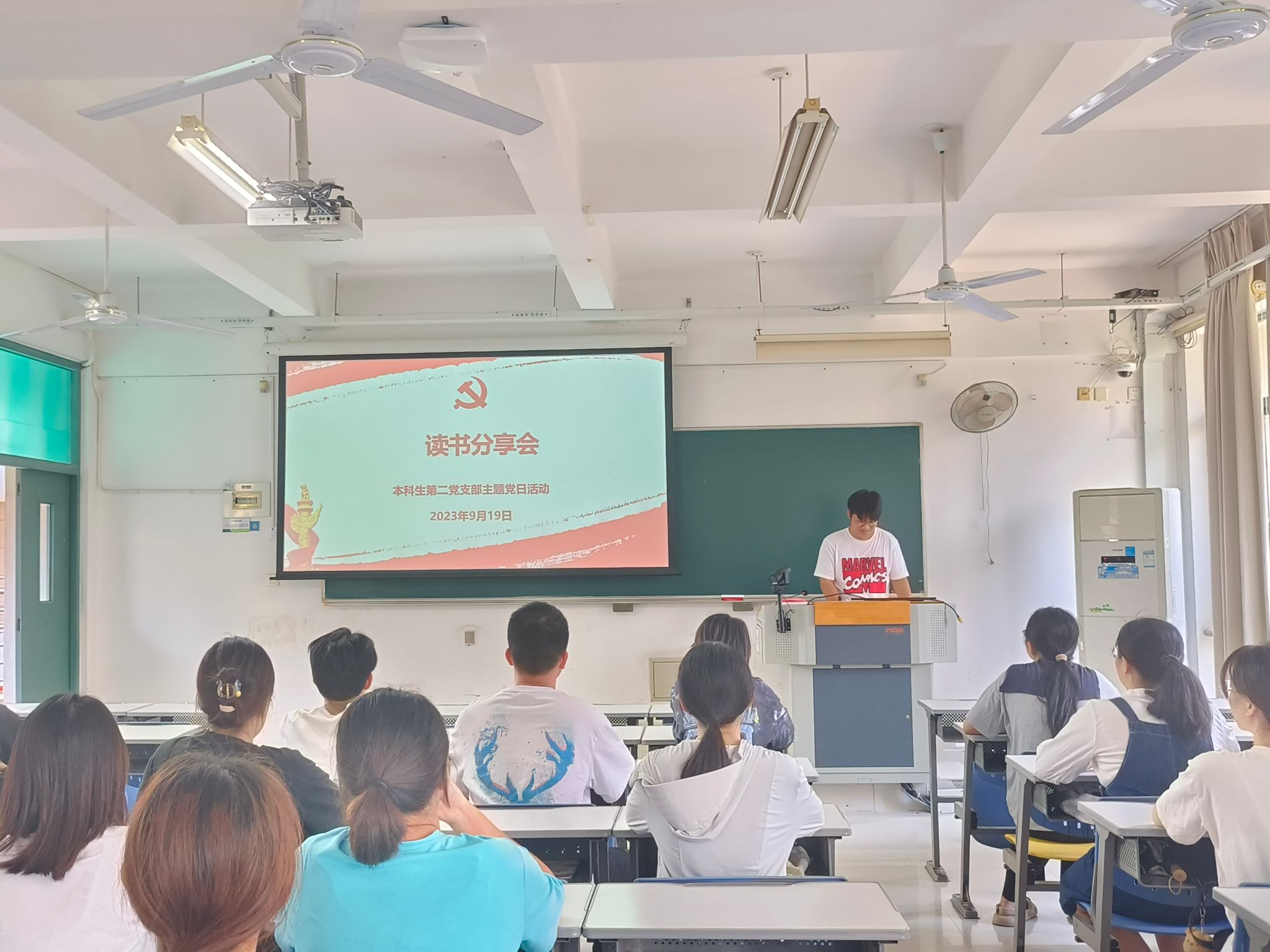 为深入开展学习贯彻习近平新时代中国特色社会主义思想主题教育,2023年9月19日下午伟德国际1949官网登录本科生第二党支部于E2-202开展读书分享会活动由党支部书记胡伟主持。