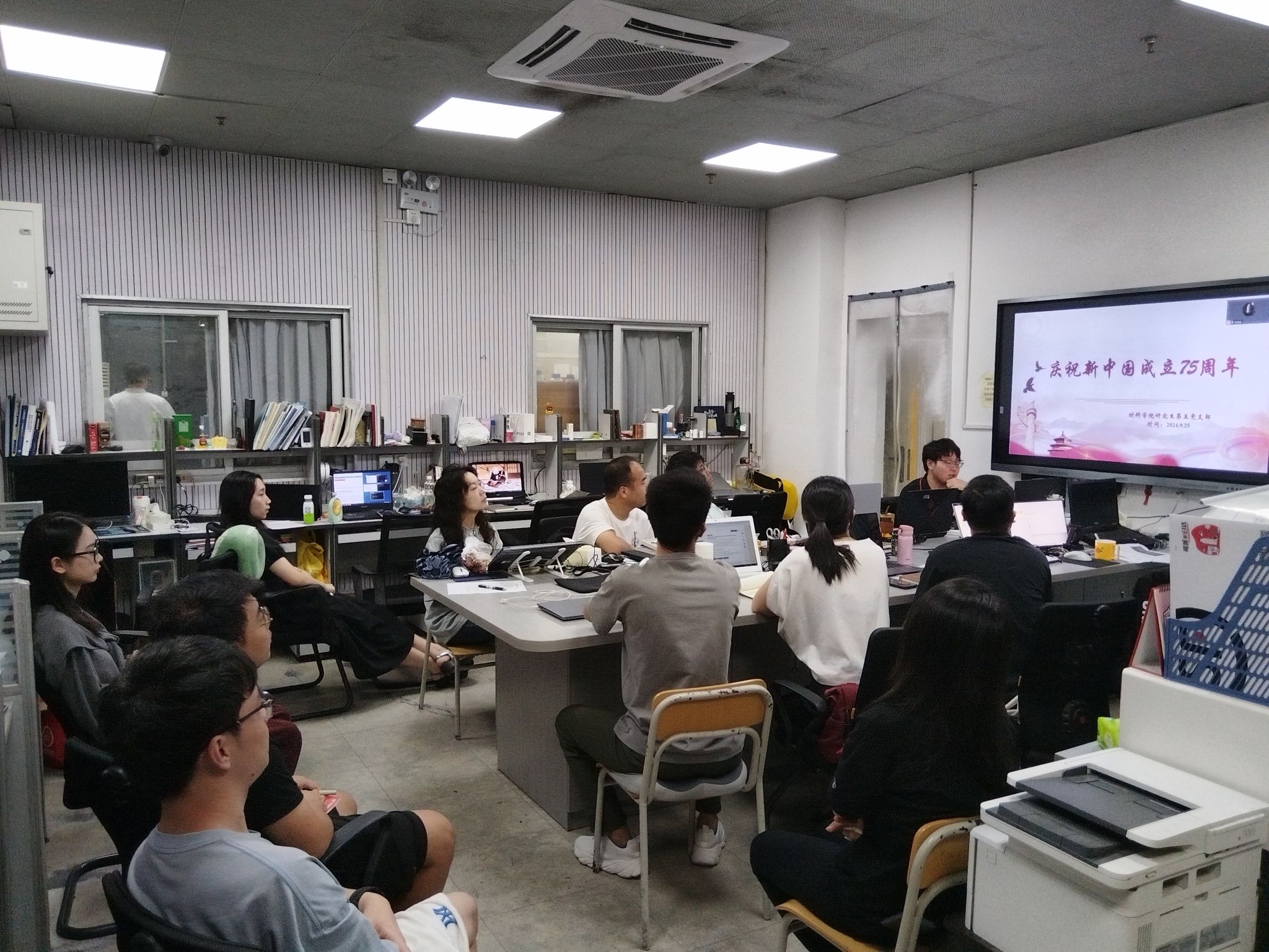 为庆祝中华人民共和国成立75周年,925日,伟德国际1949官网登录研究生第五党支部在泛华楼B129开展庆祝中华人民共和国成立75周年主题党日活动,党支部书记许景威主持会议。