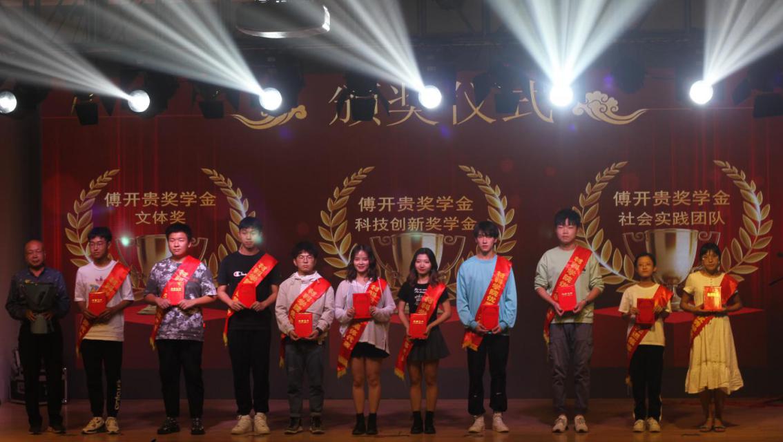 优秀校友傅开贵为获奖学生代表颁发荣誉证书