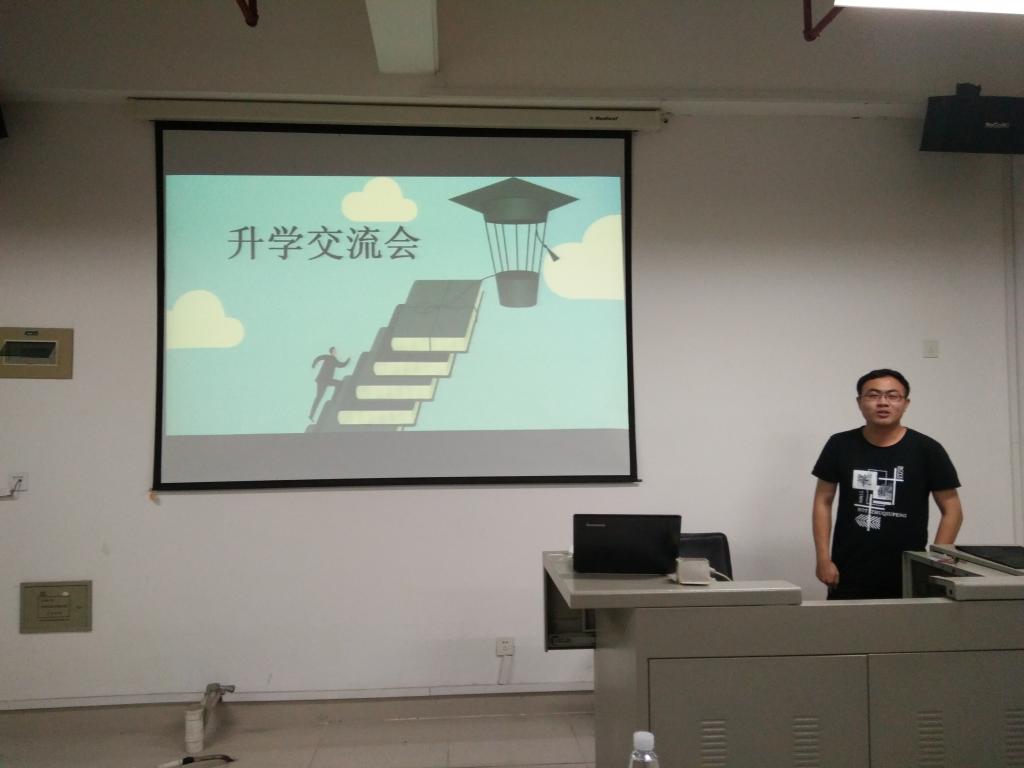 晚上7点交流会准时开始,会上几位前辈师兄结合自身的经历为同学们介绍了许多极具实效的经验和建议。何欣师兄详细讲述了关于直博的具体要求和所需的准备,提醒同学们慎重定位,尽早找准自己的目标。贺兴臣师兄就向外校考博做了较为系统的介绍,逐点说明考博所需要的准备工作以及具体的流程步骤,对如何选择一个好的导师,如何更好地面试、展现自己的优点等等都做了全面的分享。谢成师兄则为大家详细讲述了申请国家公派出国留学的一系列准备工作和具体流程,并在出国考试、择校、专业选择等方面给出了实用的意见。经验分享过后,三位师兄也就现今大部分同学们所面临的一些困惑进行了独有的解析。同学们积极与师兄们交流看法,畅所欲言,现场气氛很是愉快热烈。